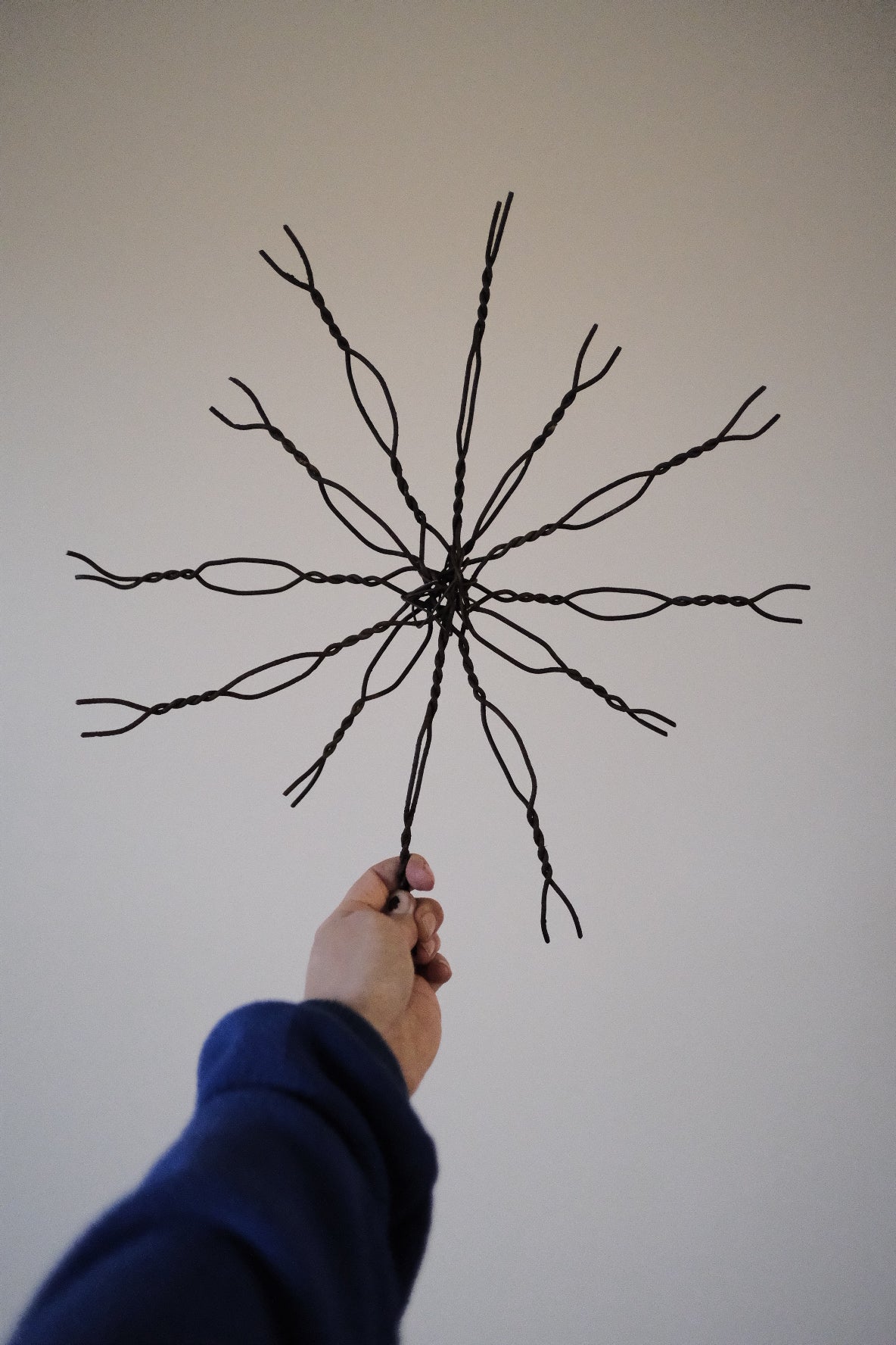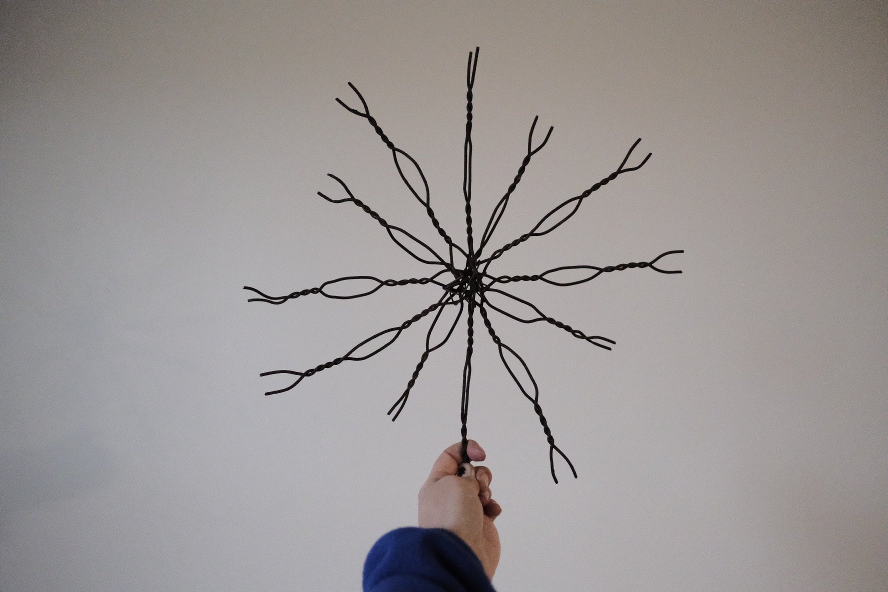 Made out of old rusty and reclaimed snow fence, these small snowflakes are around 14-15 inches wide. These snowflakes may have slight variation and may not look exactly like the one pictured